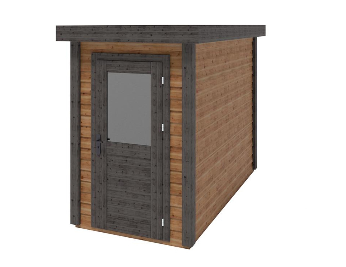 Caseta de madera para herramientas 000111 de superficie de 4.91 m2, ancho de 1.59 m, profundidad de 3.09 m y espesor de pared de 28 mm. La caseta es fácil de montar, las instrucciones de montaje están incluidas.