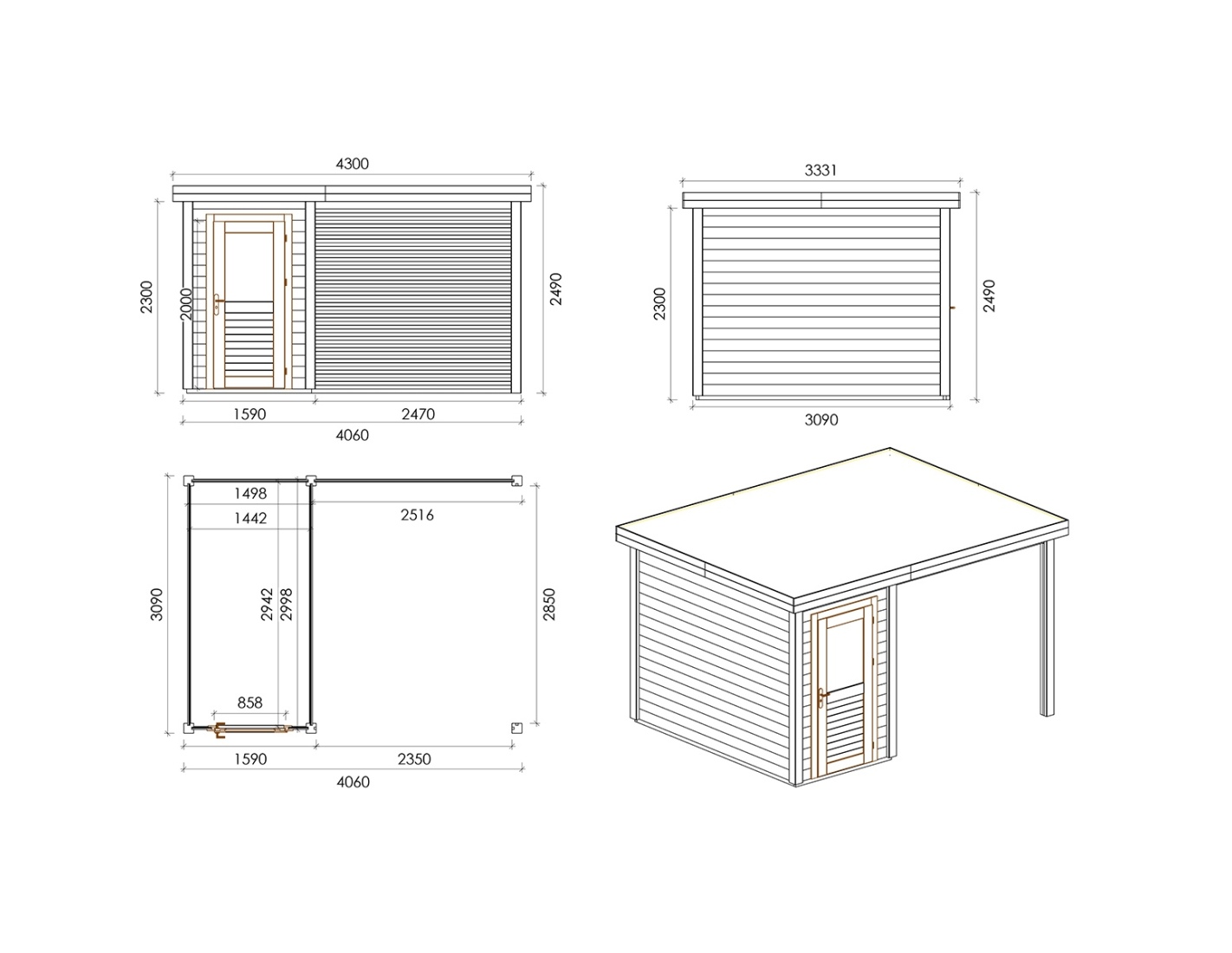 Caseta de jardín de madera Mira 4.06x3.09 m - 12.54 m2 - 28 mm – impregnada