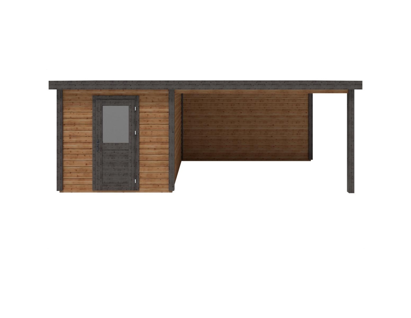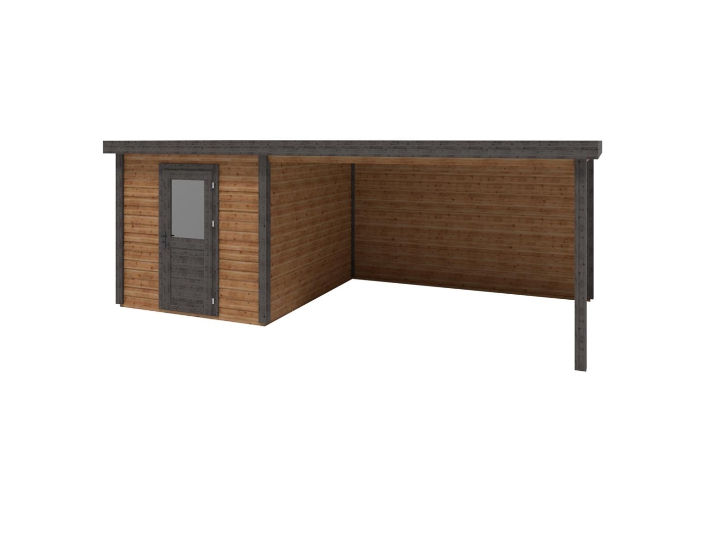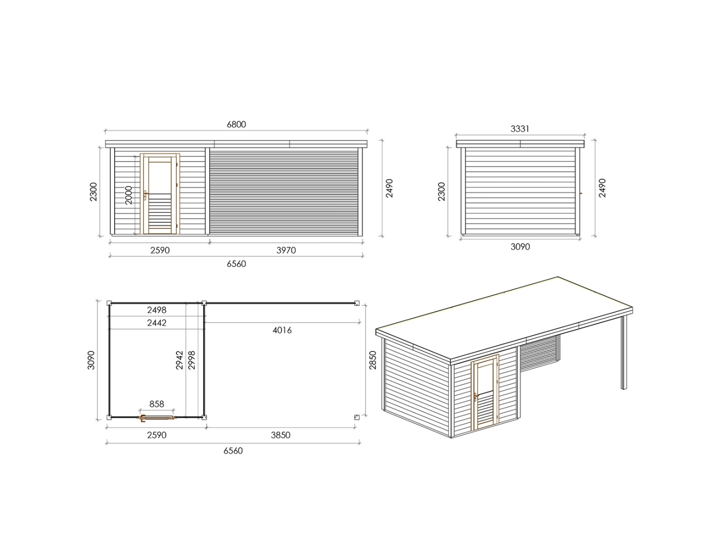 Caseta de madera para herramientas 000146 de superficie de 20.27 m2, ancho de 6.56 m, profundidad de 3.09 m y espesor de pared de 28 mm. La caseta es fácil de montar, las instrucciones de montaje están incluidas.