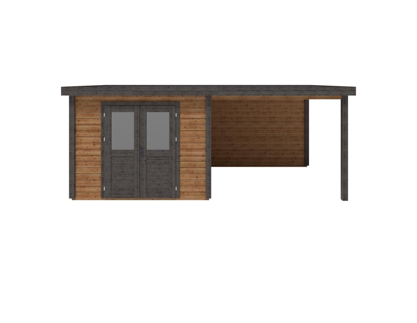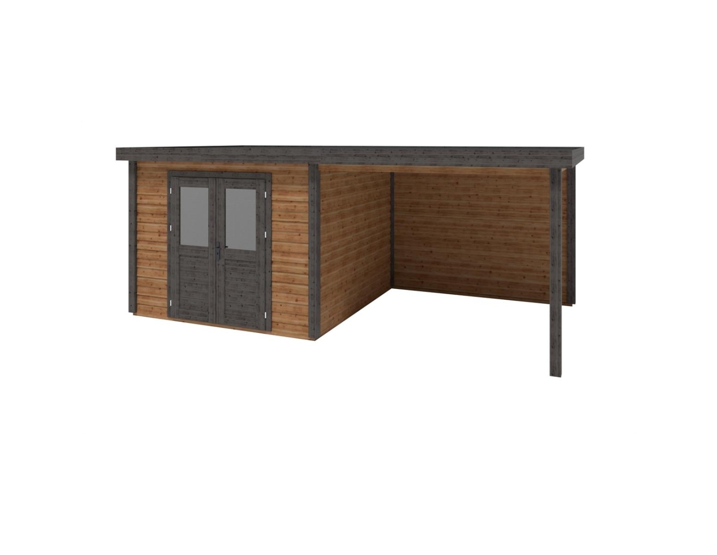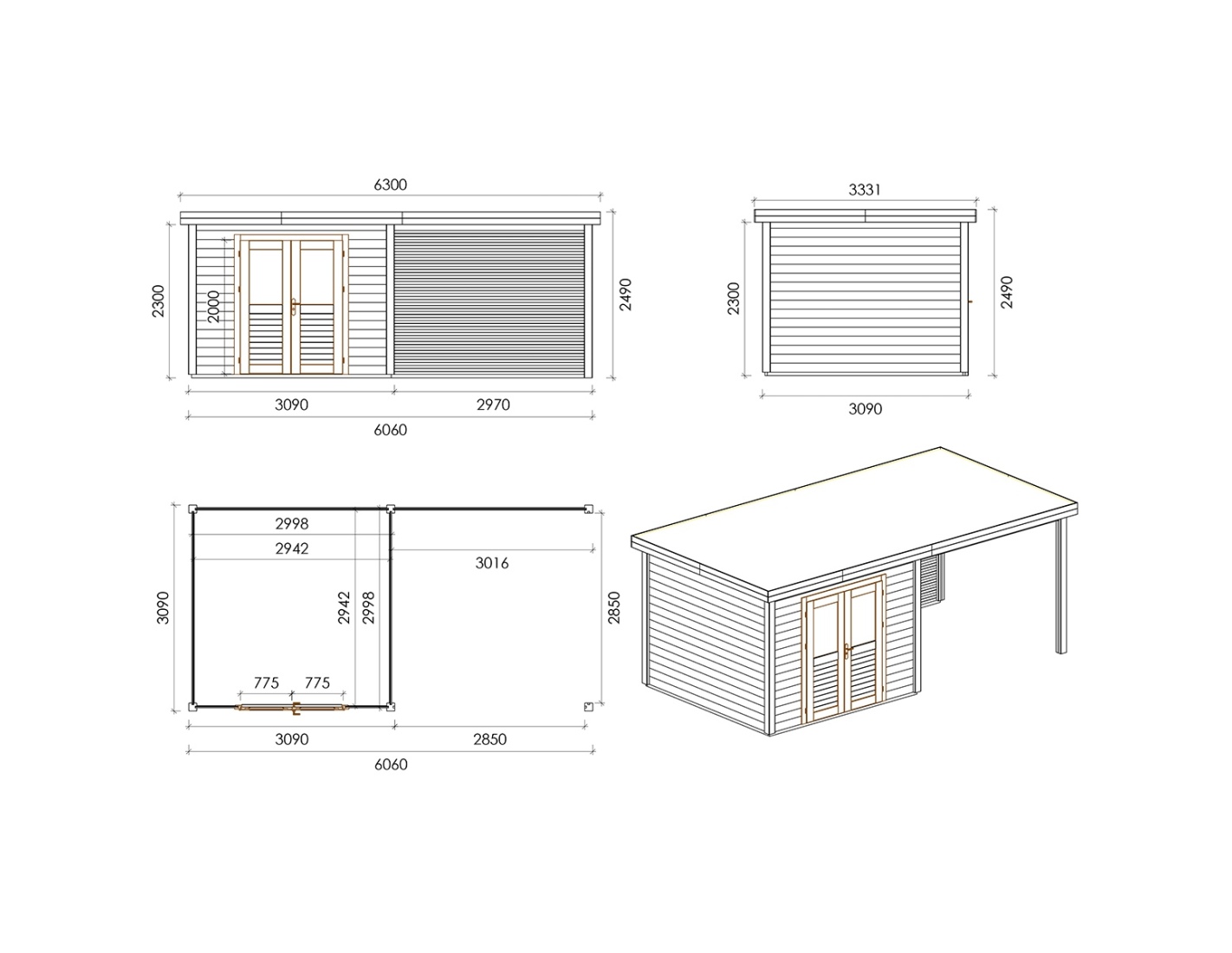 Caseta de madera para herramientas 000150 de superficie de 18.72 m2, ancho de 6.06 m, profundidad de 3.09 m y espesor de pared de 28 mm. La caseta es fácil de montar, las instrucciones de montaje están incluidas.