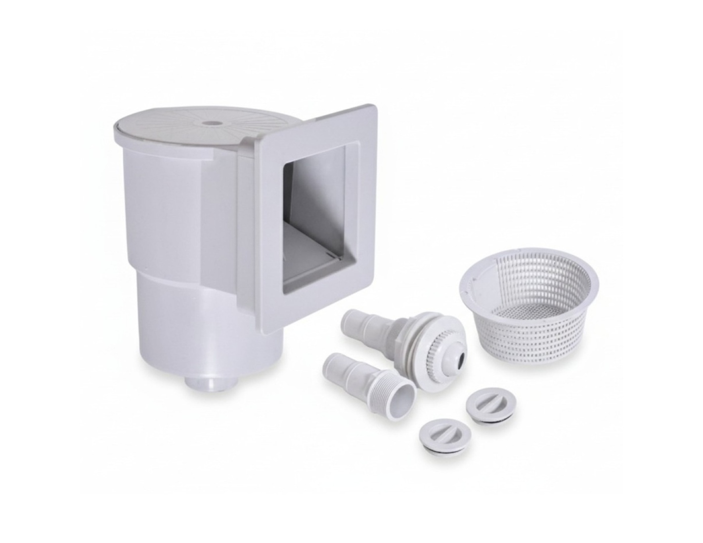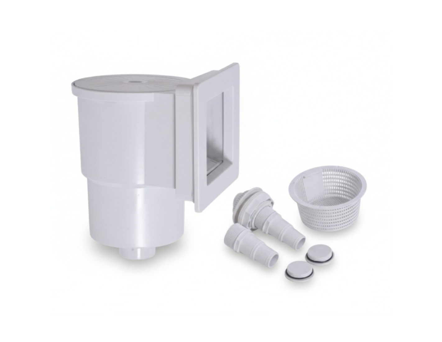 Conjunto que incluye skimmer de superficie y boquilla de impulsión, con todos los componentes necesarios para el montaje. Todas las piezas están fabricadas en material resistente a los productos químicos de la piscina. Compatible con todas las piscinas de madera de Altanka.