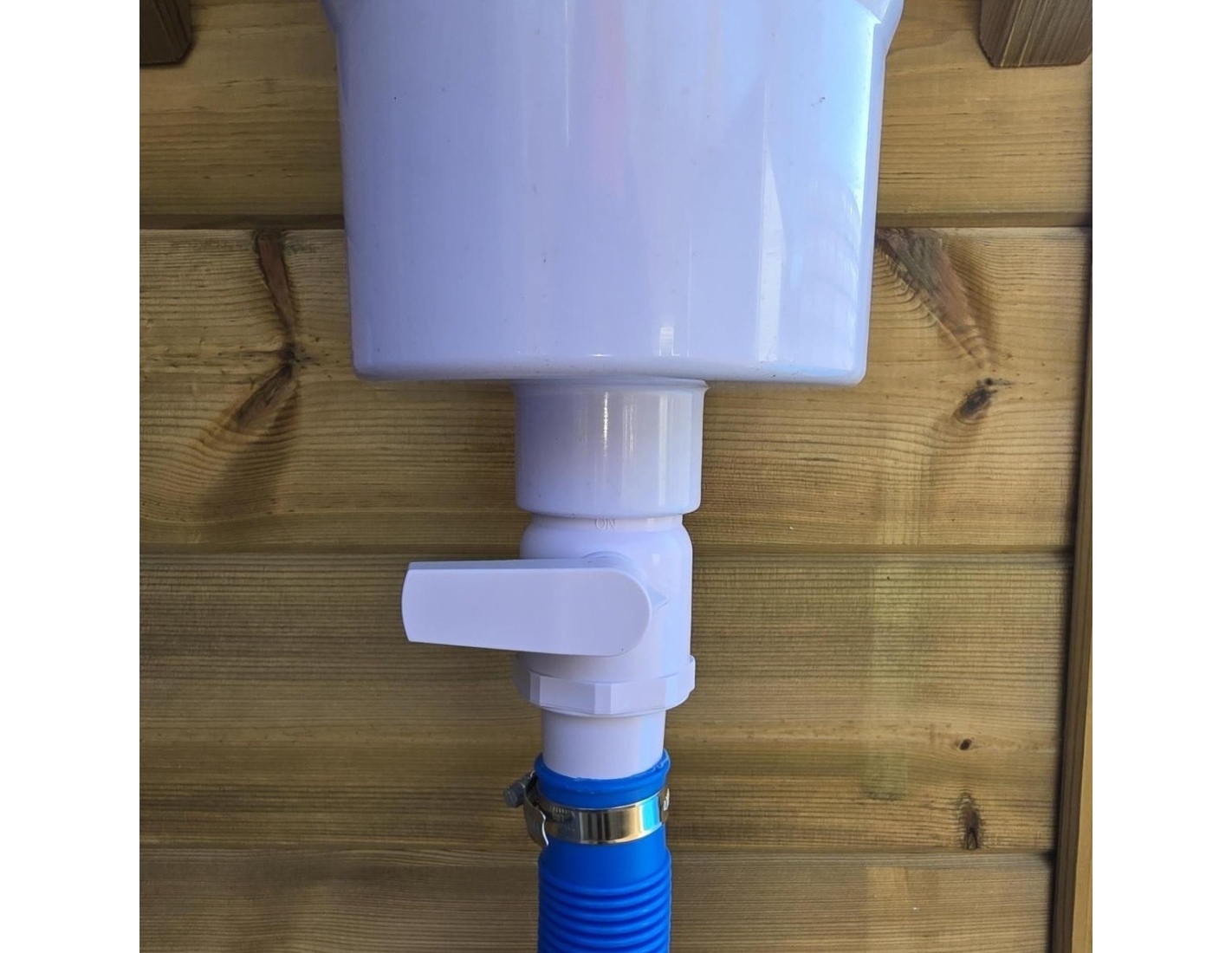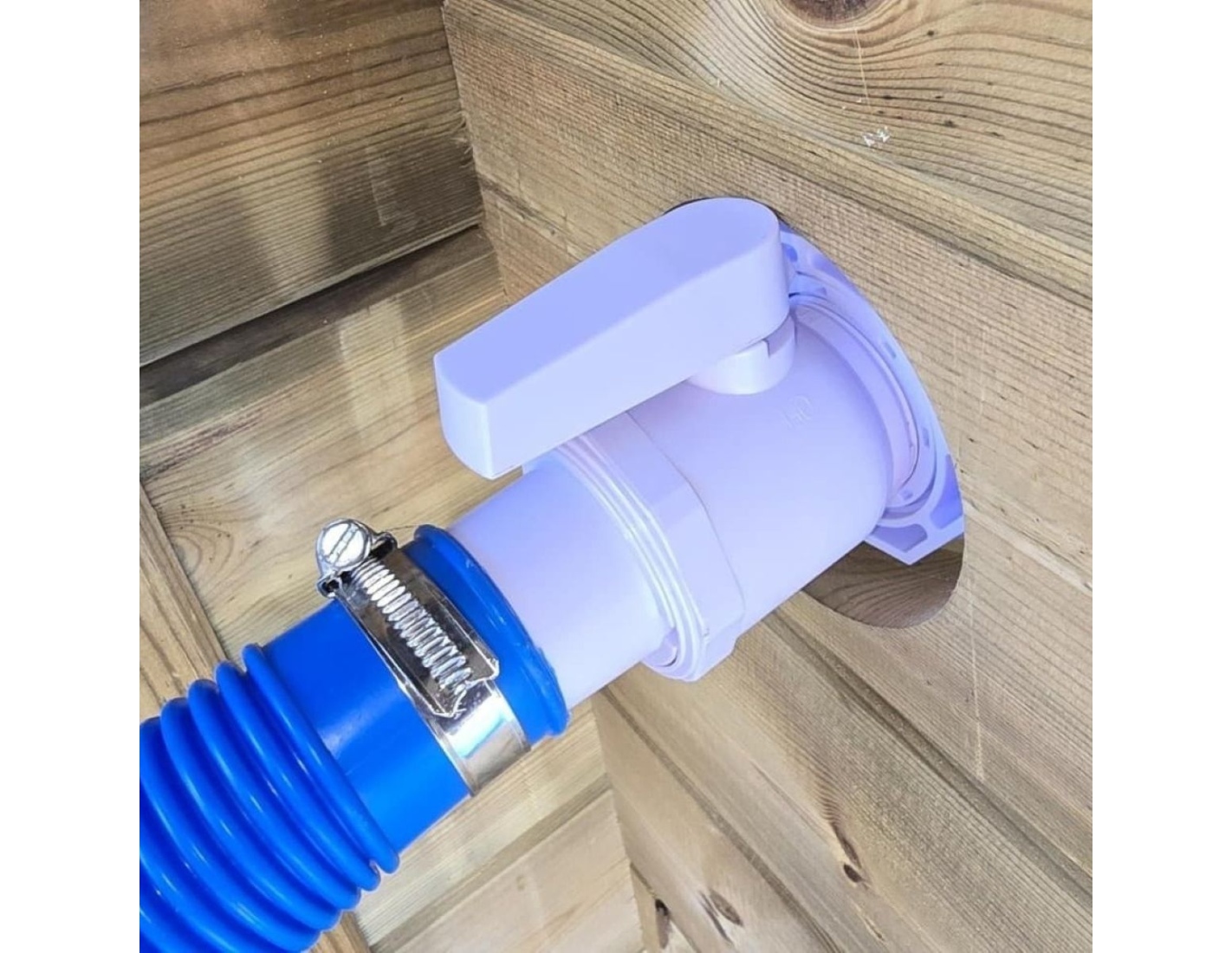 Cuerpo y mecanismo fabricados en material duradero y resistente a los productos químicos de la piscina. Conexiones compatibles con mangueras Ø38 mm o tuberías equivalentes.
