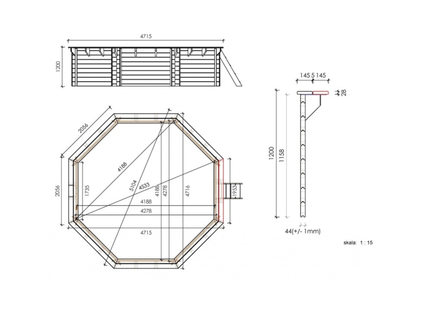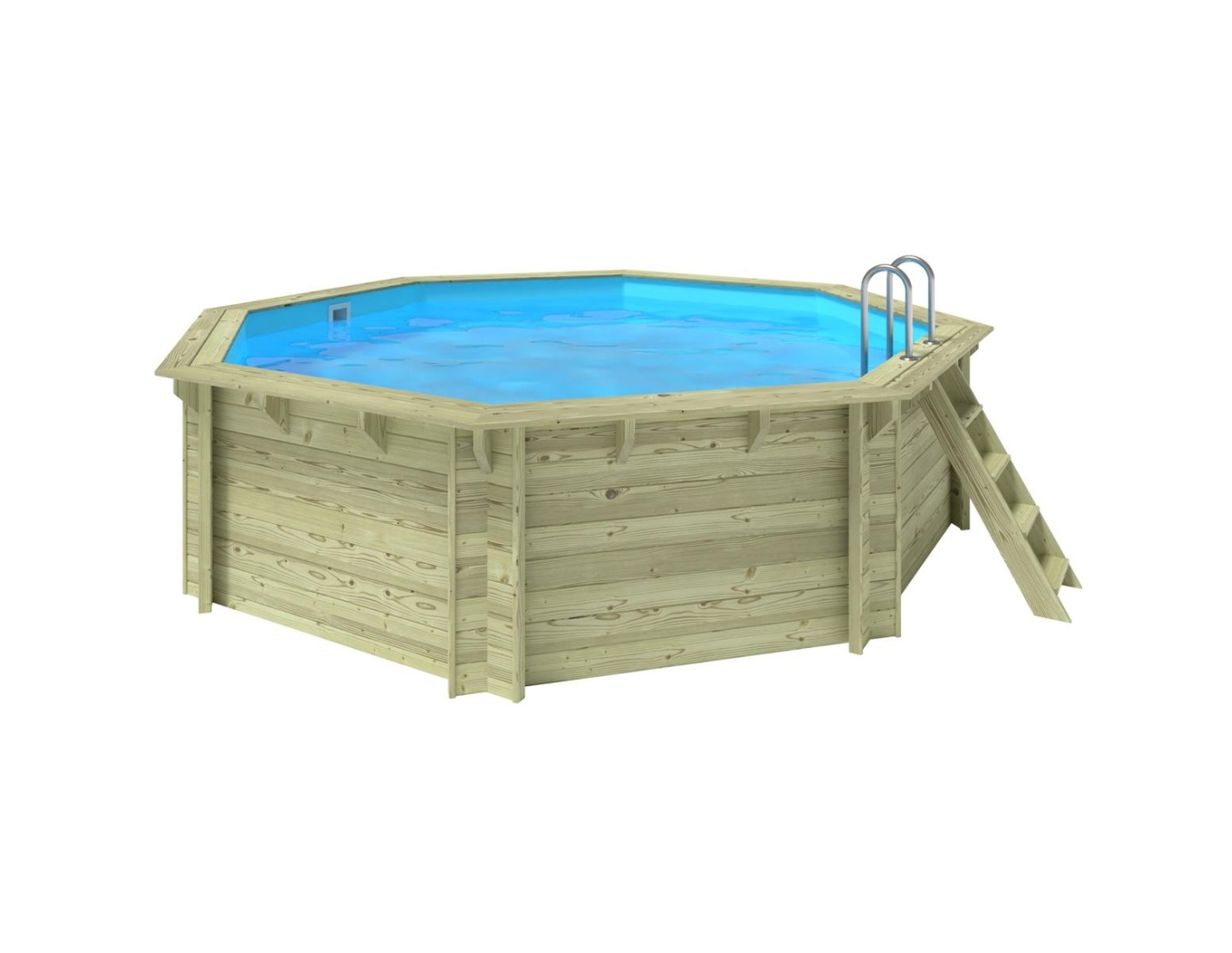 La piscina está fabricada con madera tratata de pino que, gracias al proceso de impregnación: