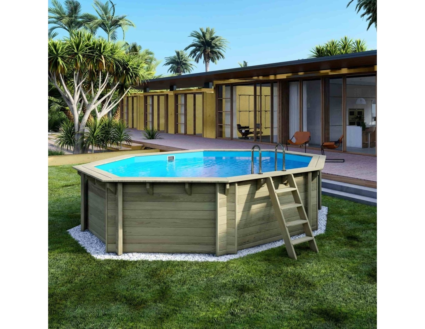 Descubre una piscina que combina la belleza natural de la madera, la estabilidad de la estructura y la seguridad de uso.