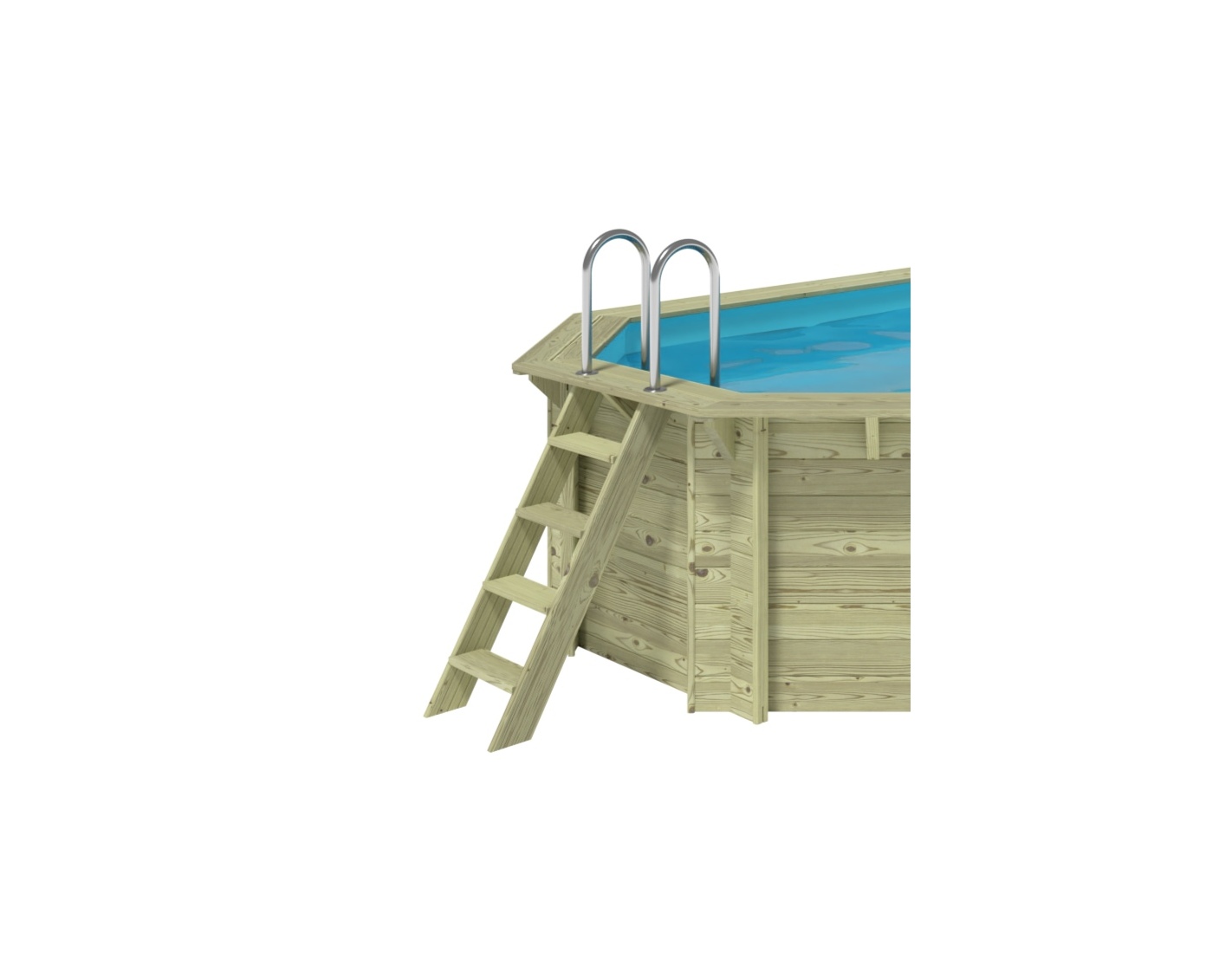 La piscina está fabricada con madera tratata de pino que, gracias al proceso de impregnación: