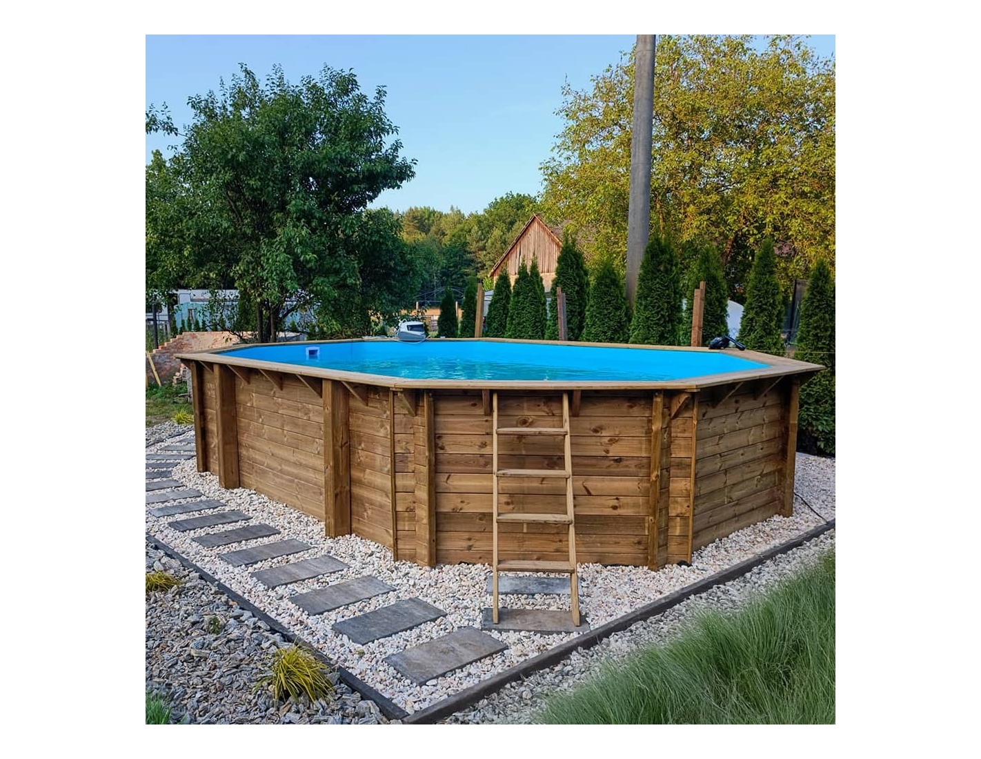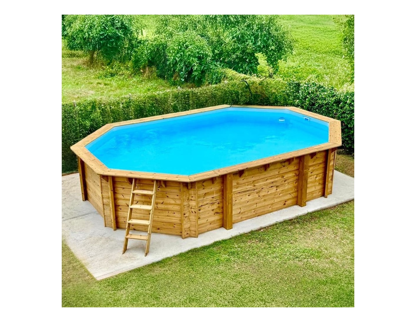 Descubre una piscina que combina la belleza natural de la madera, la estabilidad de la estructura y la seguridad de uso.