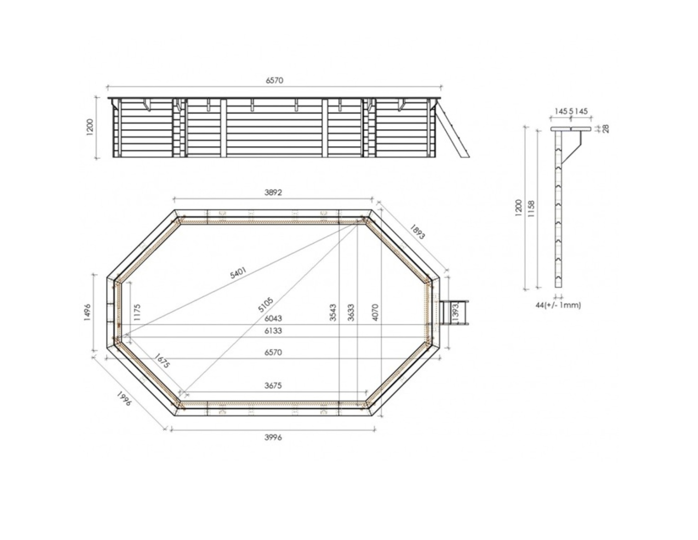 El modelo de piscina con dimensiones 6.57 × 4.07 m y una altura de 1.2 m ha sido diseñado para que toda la familia pueda disfrutar cómodamente del frescor en los cálidos días de verano.
