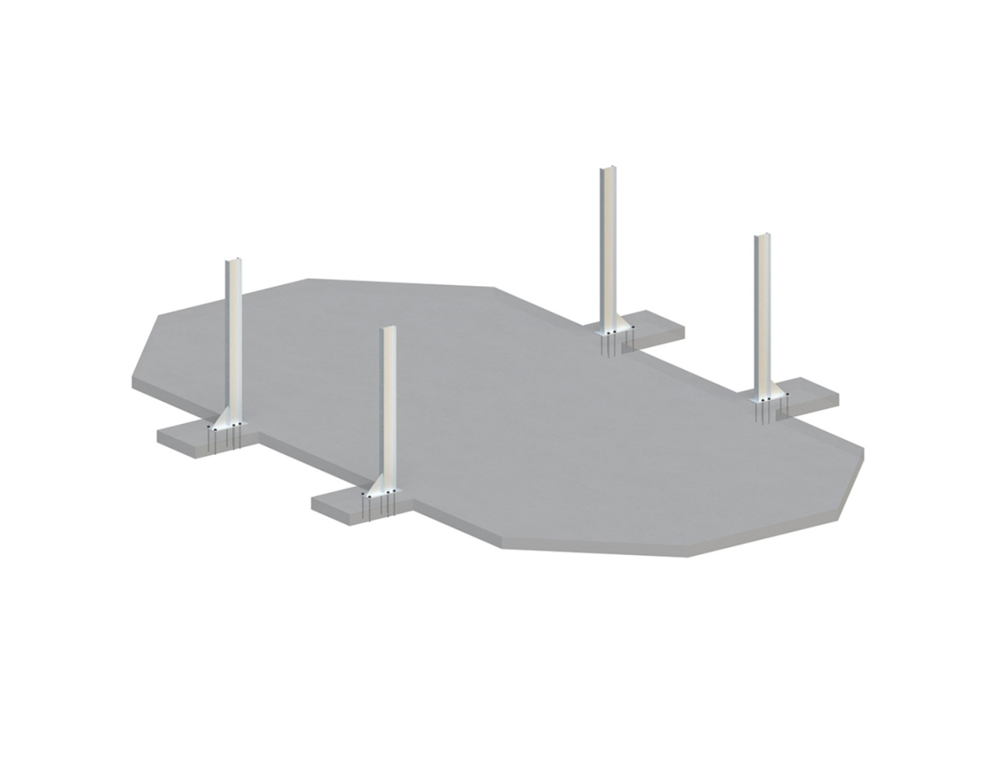 - se requiere una losa de hormigón reforzado con un espesor mínimo de 10 cm (localmente al menos 30 cm bajo los soportes),