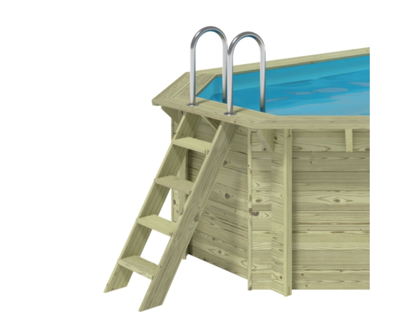 Descubre una piscina que combina la belleza natural de la madera, la estabilidad de la estructura y la seguridad de uso.