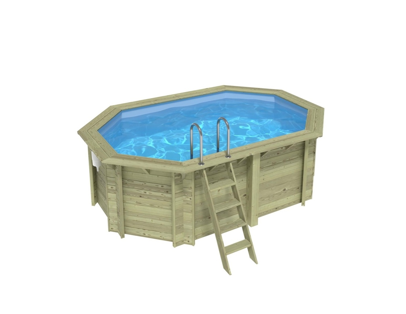 La piscina está fabricada con madera tratata de pino que, gracias al proceso de impregnación: