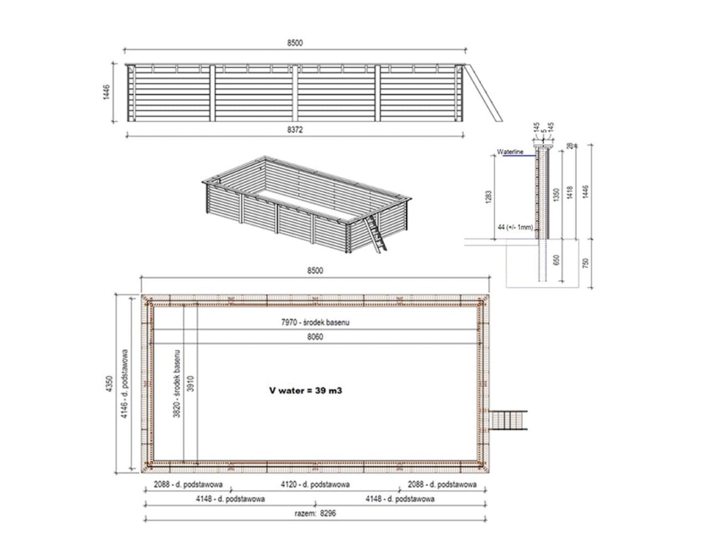 El modelo de piscina con dimensiones 8.5 × 4.35 m y una altura de 1.45 m ha sido diseñado para que toda la familia pueda disfrutar cómodamente del frescor en los cálidos días de verano.