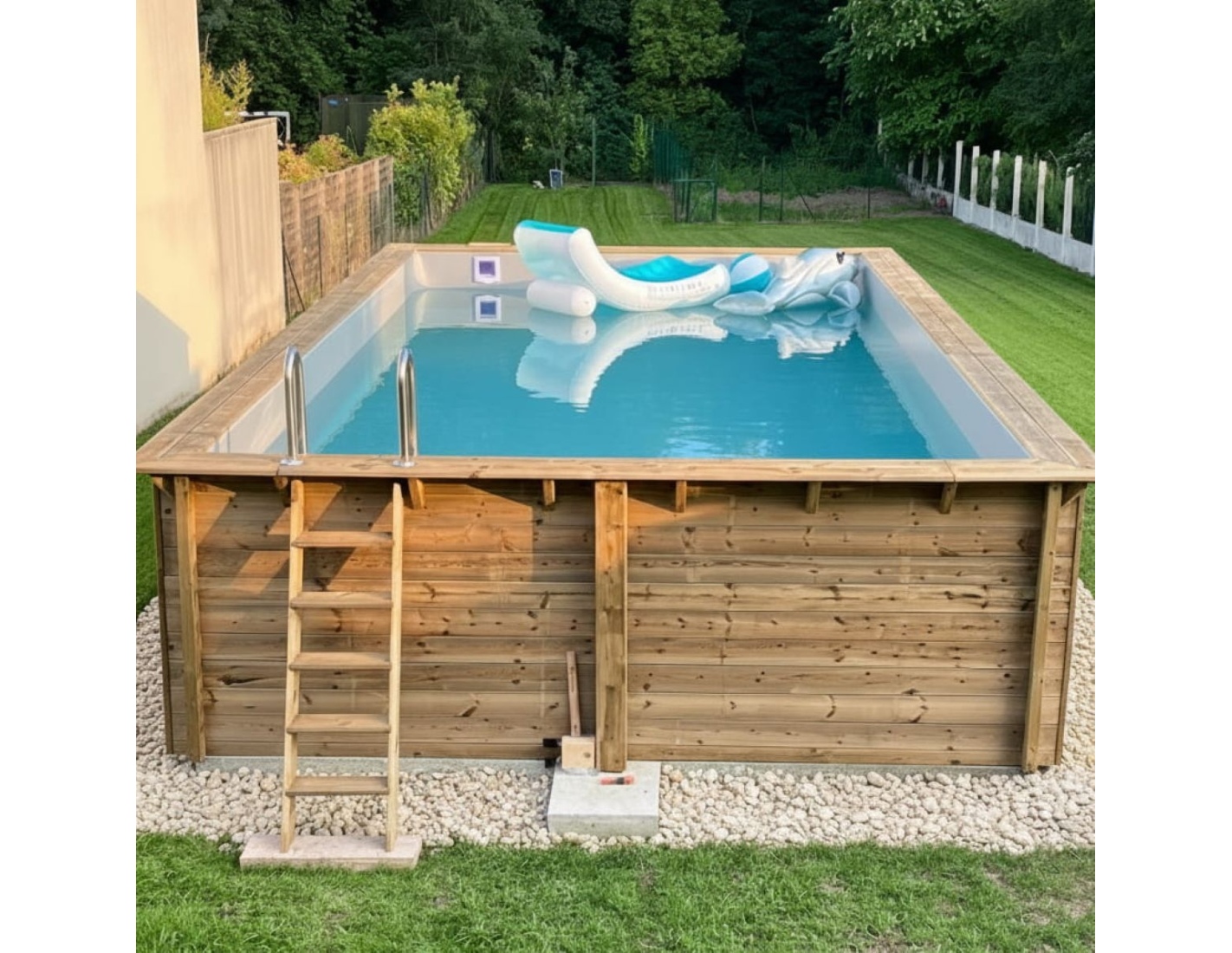 Descubre una piscina que combina la belleza natural de la madera, la estabilidad de la estructura y la seguridad de uso.