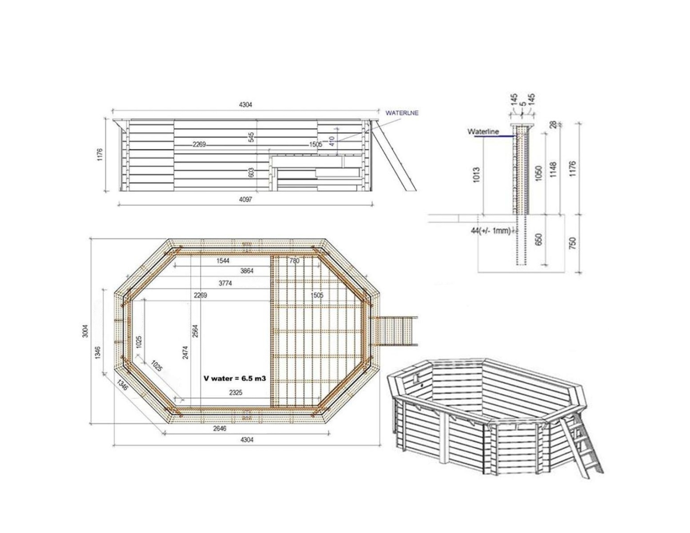 El modelo de piscina con dimensiones 4.3 × 3 m y una altura de 1.18 m ofrece dos niveles de profundidad – diseñado para quienes buscan algo más que una piscina de jardín convencional.