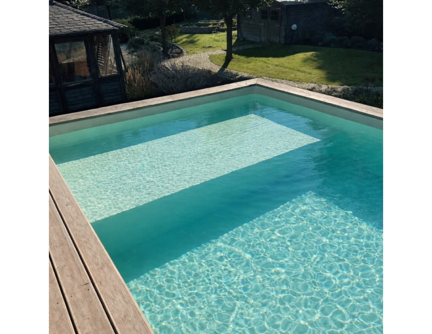 El modelo de piscina con dimensiones 4.3 × 3 m y una altura de 1.18 m ofrece dos niveles de profundidad – diseñado para quienes buscan algo más que una piscina de jardín convencional.