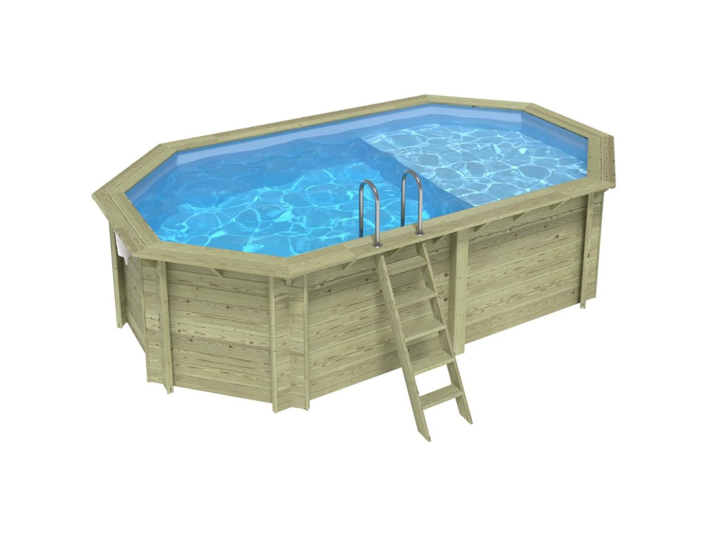 El modelo de piscina con dimensiones 5.79 × 3.49 m y una altura de 1.45 m ofrece dos niveles de profundidad – diseñado para quienes buscan algo más que una piscina de jardín convencional.
