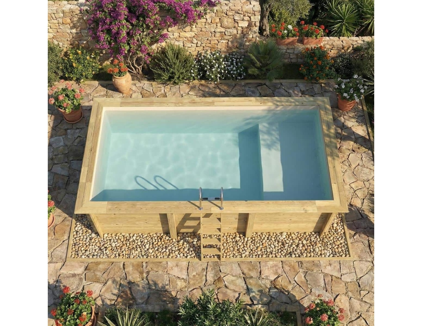 La madera aporta al entorno un carácter elegante y acogedor, y su aspecto clásico permite que la piscina se integre en cualquier tipo de jardín. Puedes añadir terrazas de madera, plantas o iluminación decorativa para crear un espacio verdaderamente acogedor.