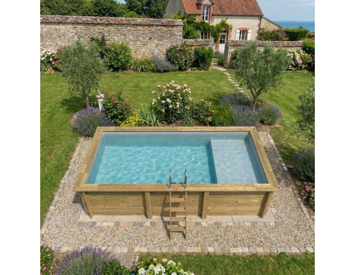 La madera aporta al entorno un carácter elegante y acogedor, y su aspecto clásico permite que la piscina se integre en cualquier tipo de jardín. Puedes añadir terrazas de madera, plantas o iluminación decorativa para crear un espacio verdaderamente acogedor.