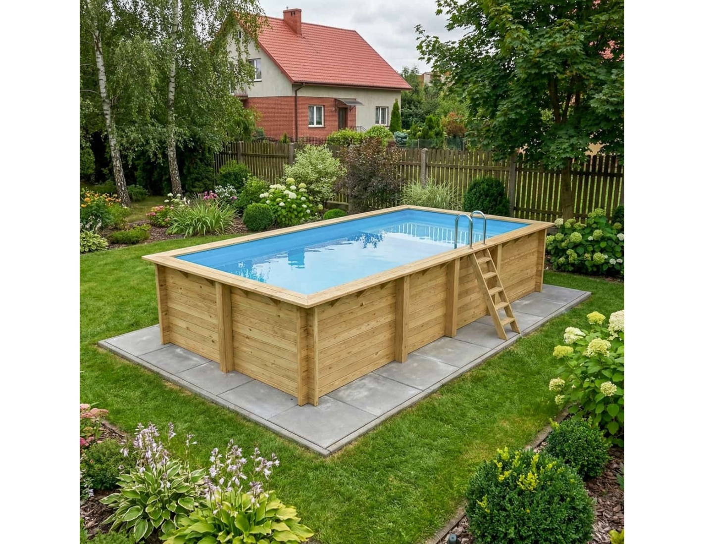 La madera aporta al entorno un carácter elegante y acogedor, y su aspecto clásico permite que la piscina se integre en cualquier tipo de jardín. Puedes añadir terrazas de madera, plantas o iluminación decorativa para crear un espacio verdaderamente acogedor.