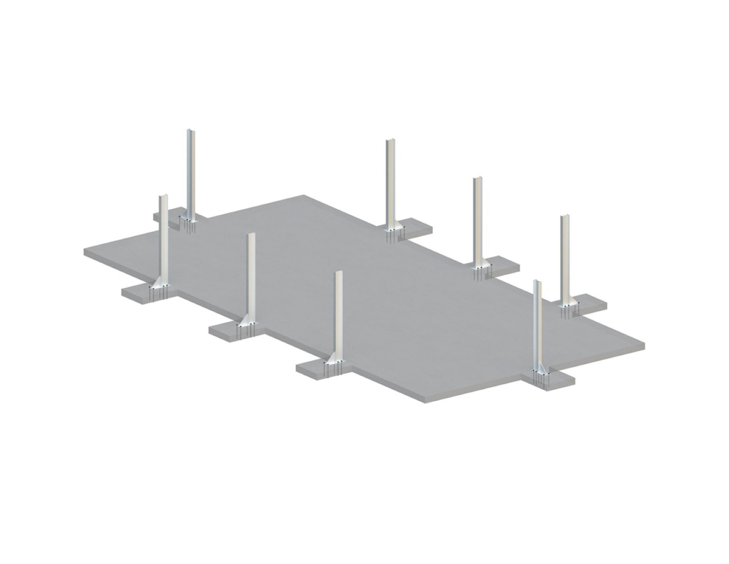 • se requiere una losa de hormigón reforzado con un espesor mínimo de 10 cm (localmente al menos 30 cm bajo los soportes),