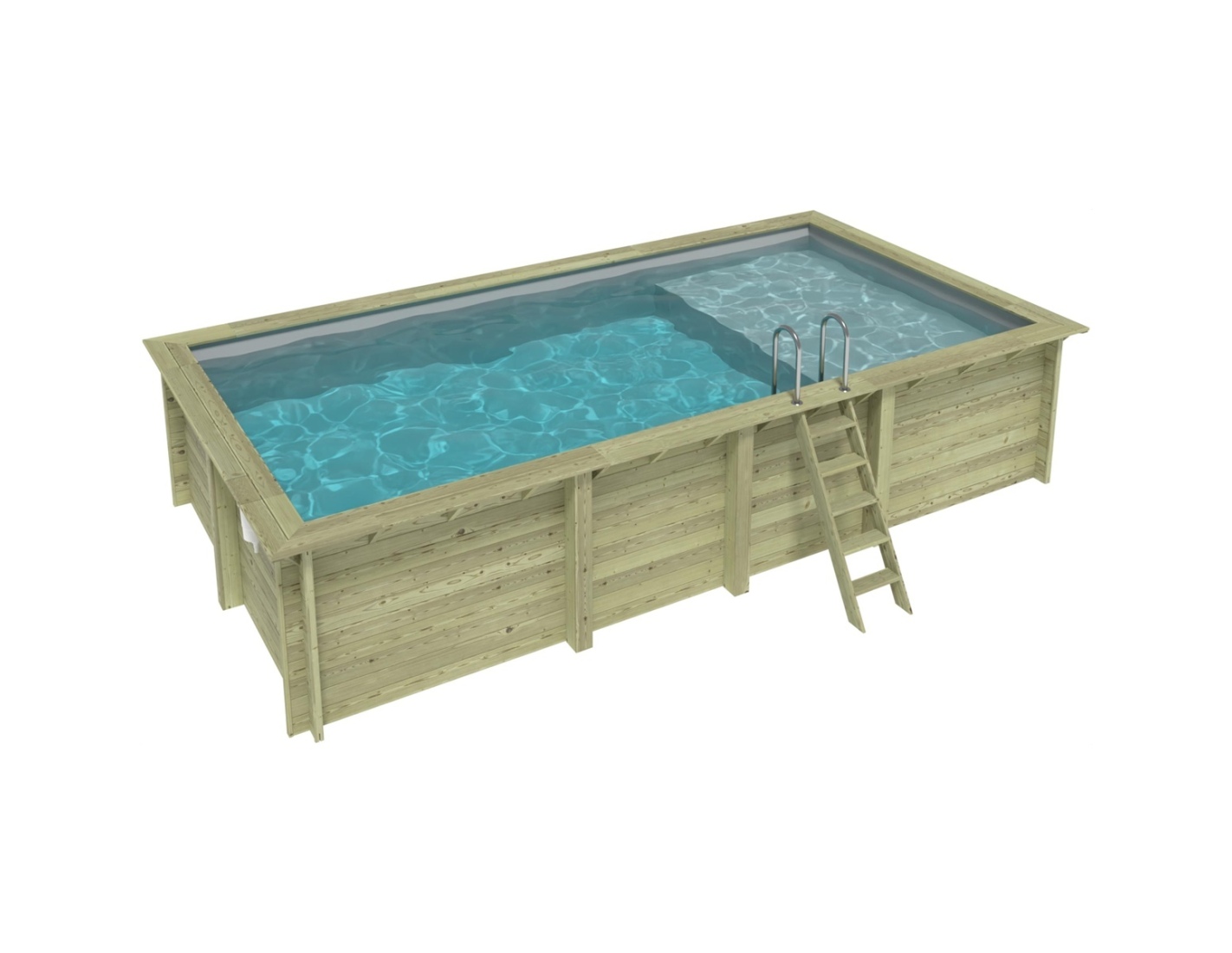 El modelo de piscina con dimensiones 7 × 3.75 m y una altura de 1.45 m ofrece dos niveles de profundidad – diseñado para quienes buscan algo más que una piscina de jardín convencional.