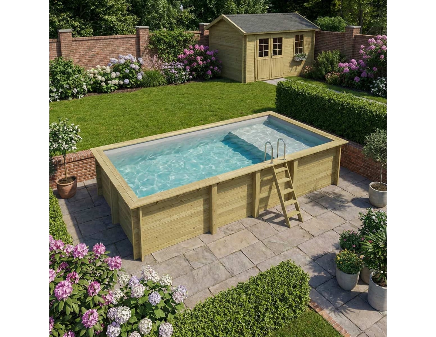 La madera aporta al entorno un carácter elegante y acogedor, y su aspecto clásico permite que la piscina se integre en cualquier tipo de jardín. Puedes añadir terrazas de madera, plantas o iluminación decorativa para crear un espacio verdaderamente acogedor.