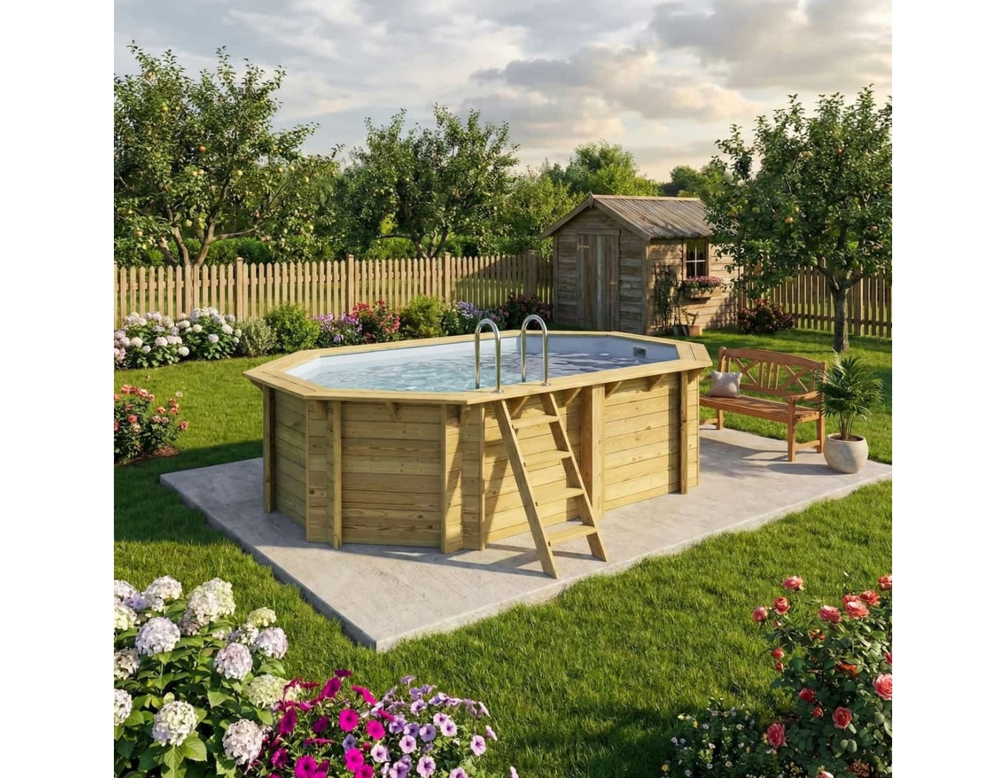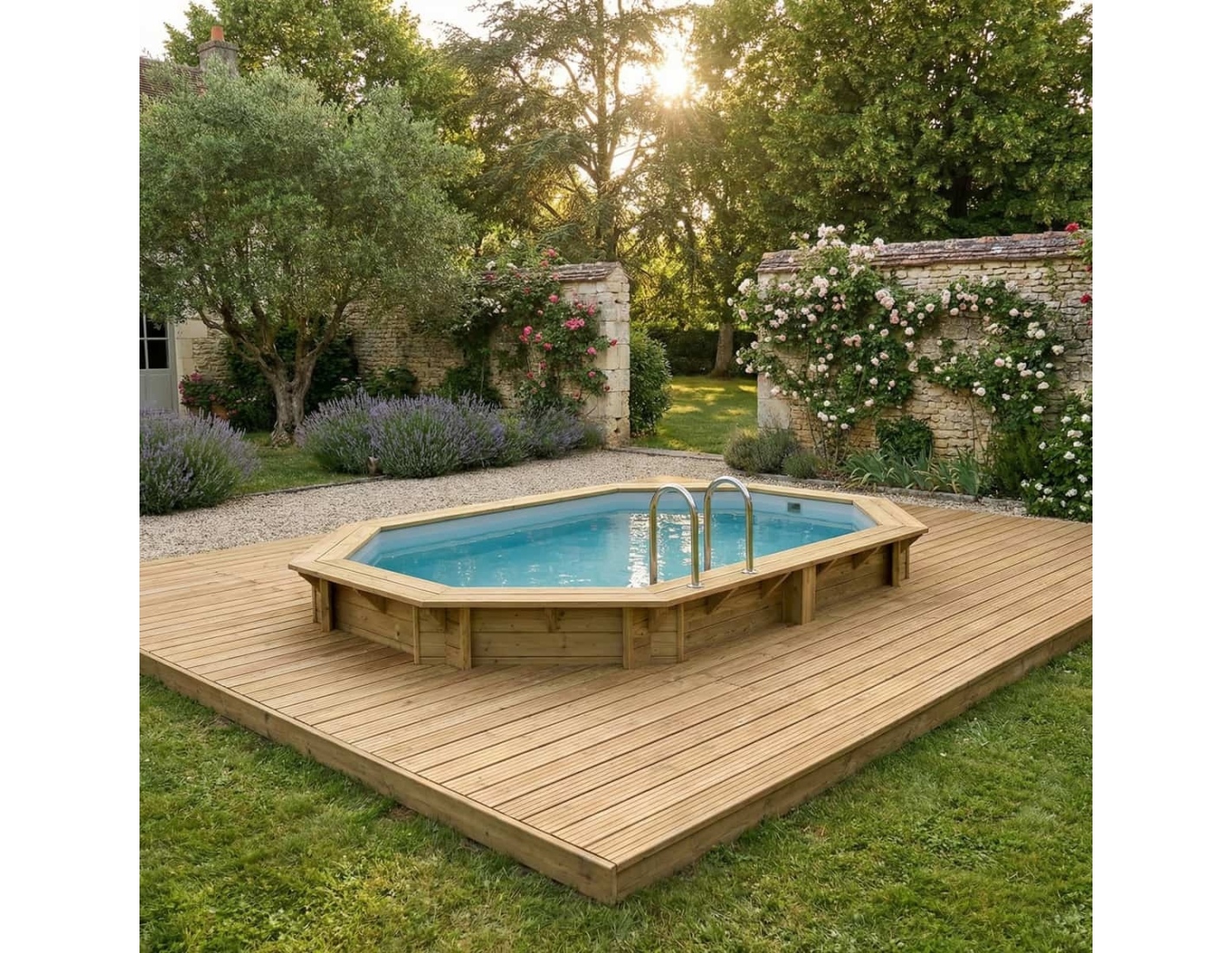 Descubre una piscina que combina la belleza natural de la madera, la estabilidad de la estructura y la seguridad de uso.