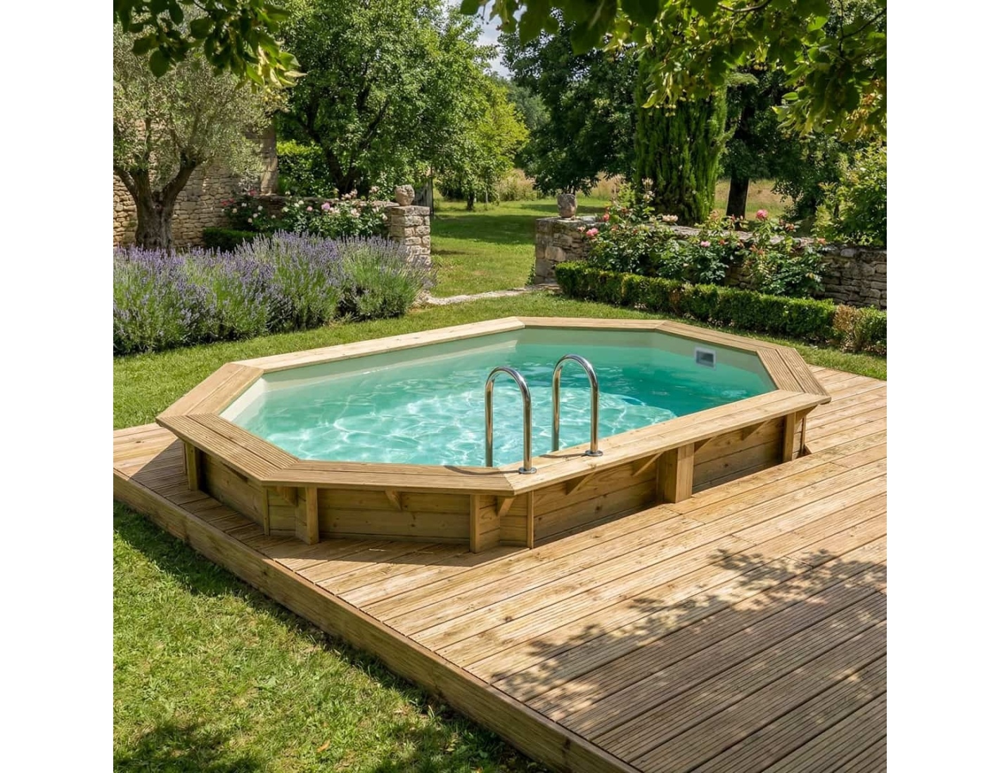 Descubre una piscina que combina la belleza natural de la madera, la estabilidad de la estructura y la seguridad de uso.