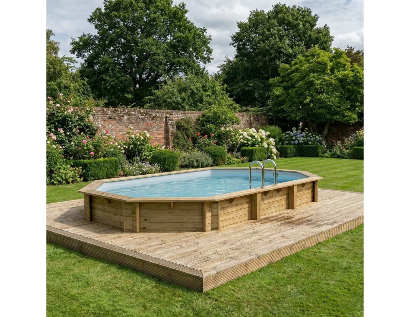 Descubre una piscina que combina la belleza natural de la madera, la estabilidad de la estructura y la seguridad de uso.