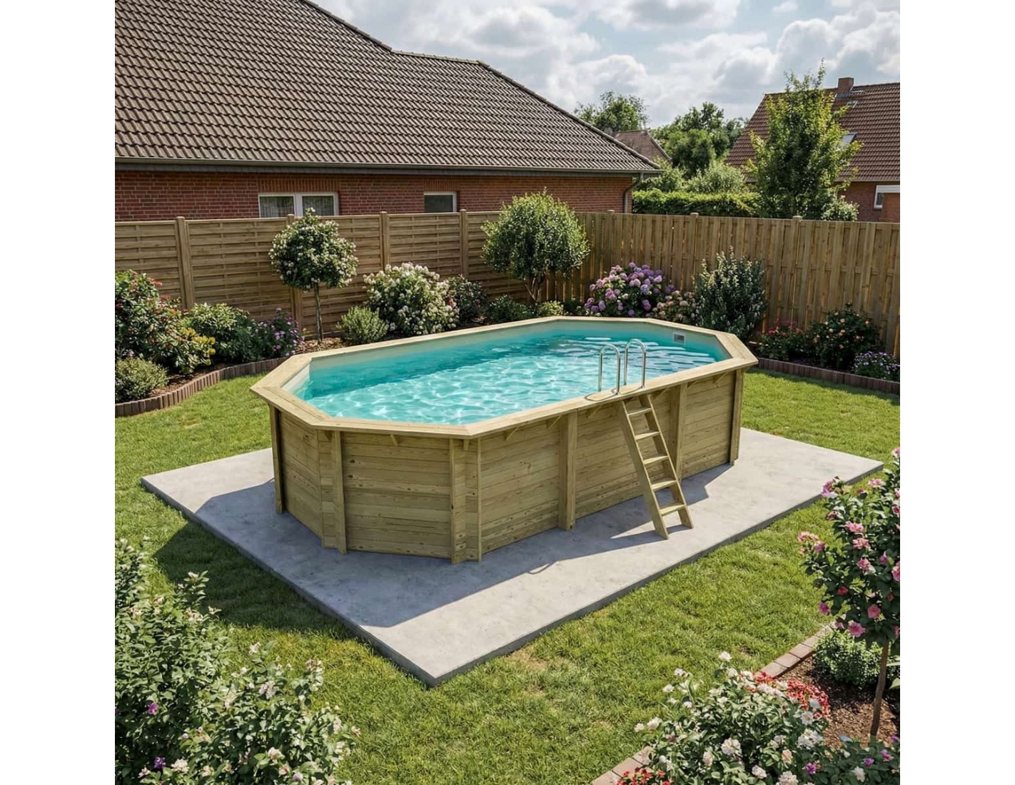 Descubre una piscina que combina la belleza natural de la madera, la estabilidad de la estructura y la seguridad de uso.