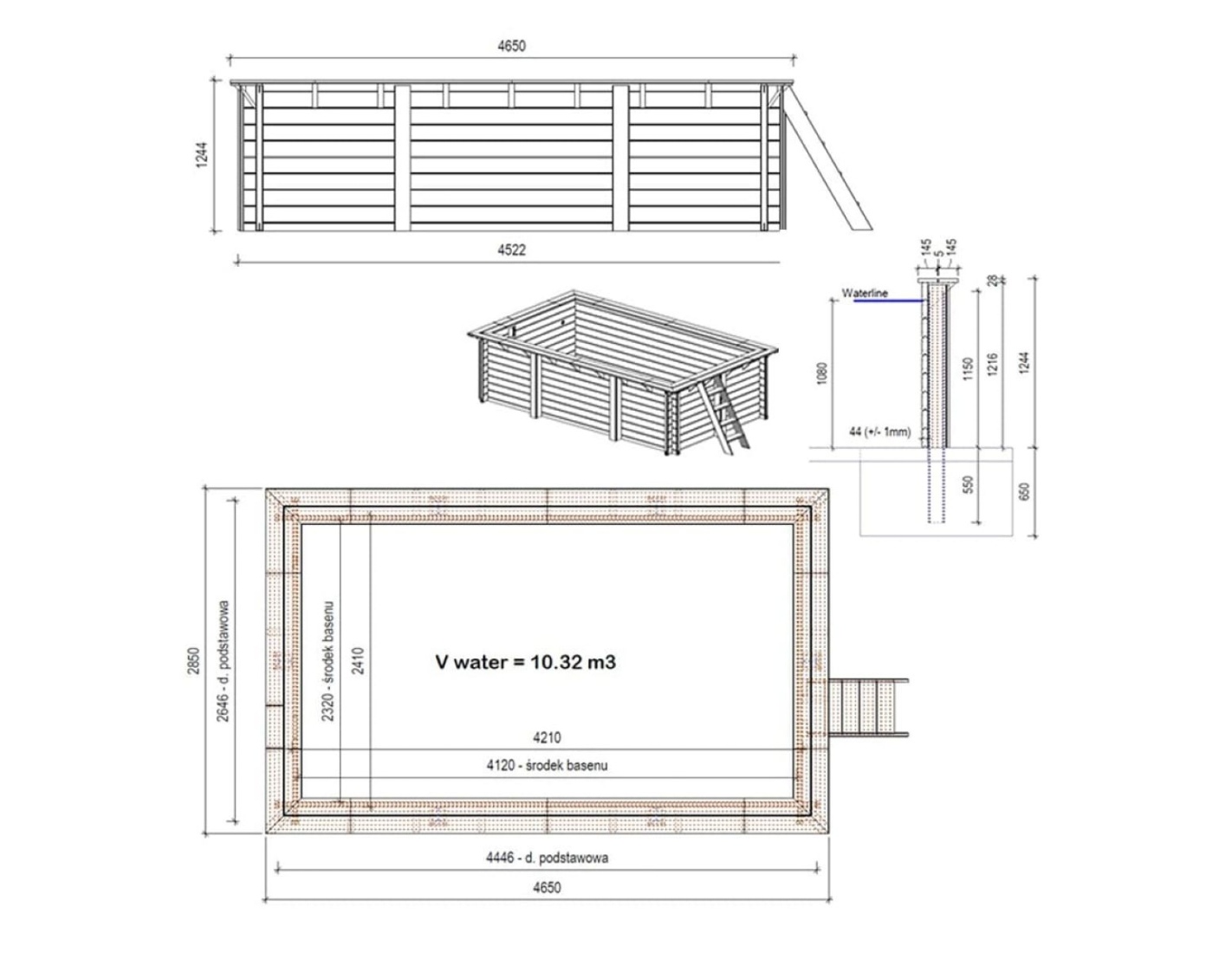 Piscina de madera AQUA 4.65 x 2.85 – H.1.24 m, arena, con vigas a encastrar en la solera