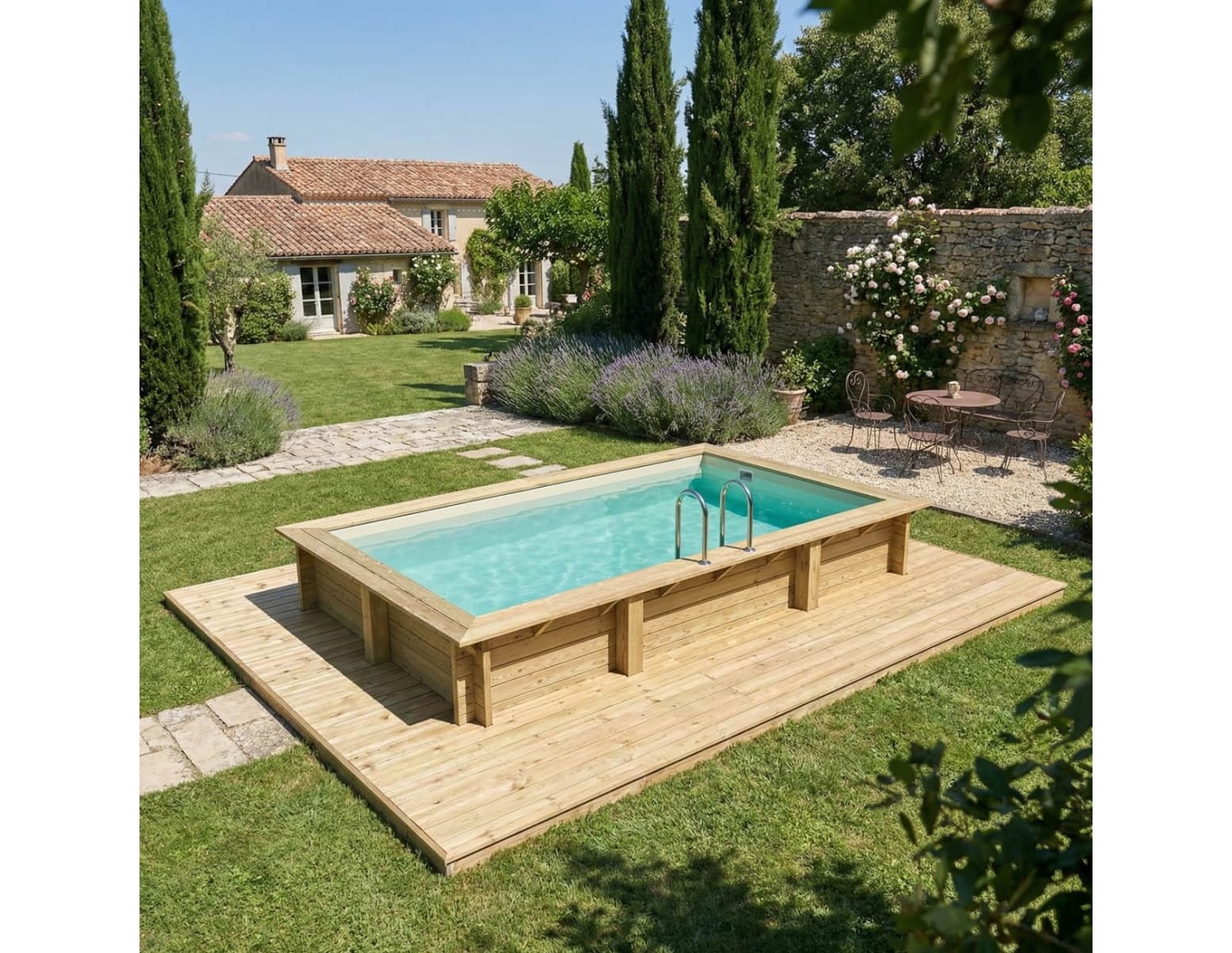 Descubre una piscina que combina la belleza natural de la madera, la estabilidad de la estructura y la seguridad de uso.