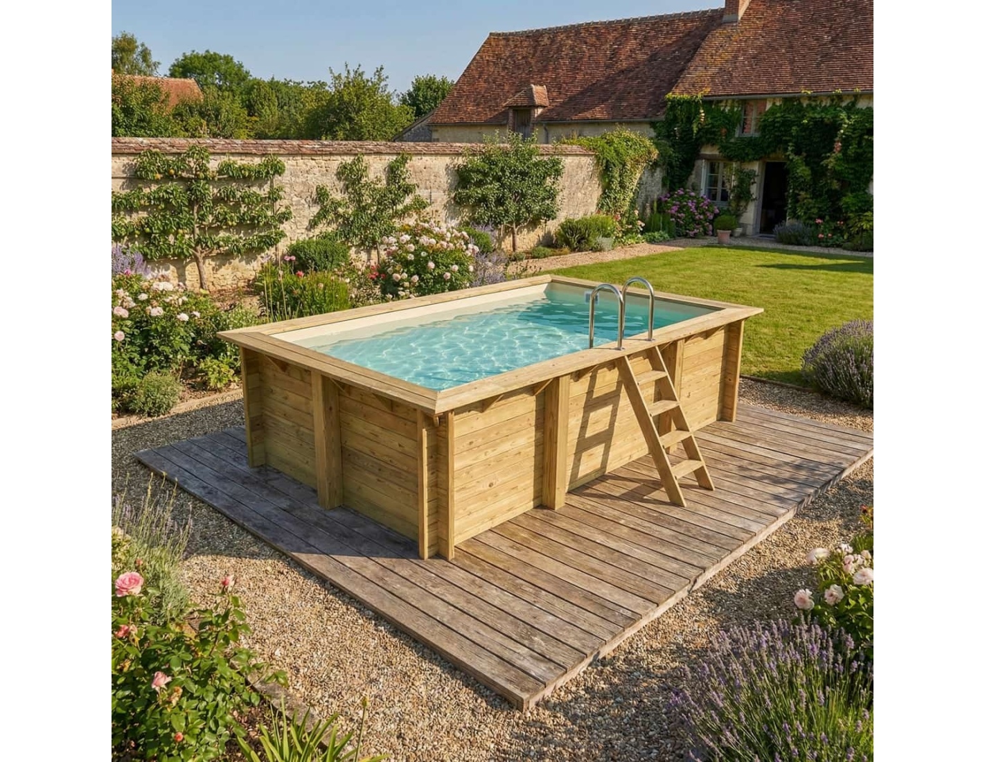 Descubre una piscina que combina la belleza natural de la madera, la estabilidad de la estructura y la seguridad de uso.