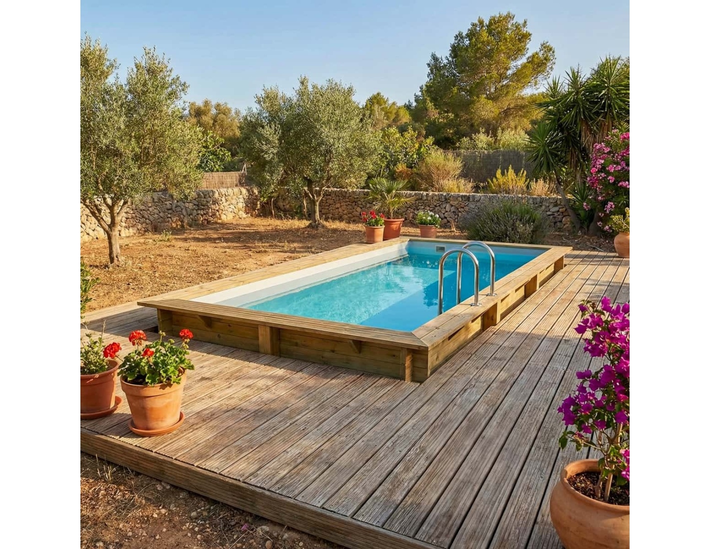 Descubre una piscina que combina la belleza natural de la madera, la estabilidad de la estructura y la seguridad de uso.