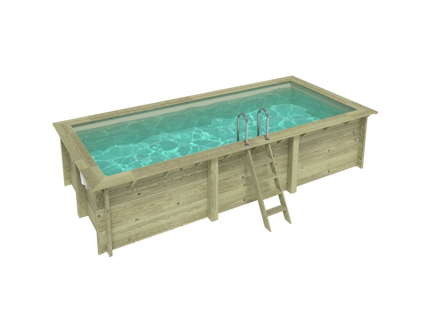 La piscina está fabricada con madera tratata de pino que, gracias al proceso de impregnación: