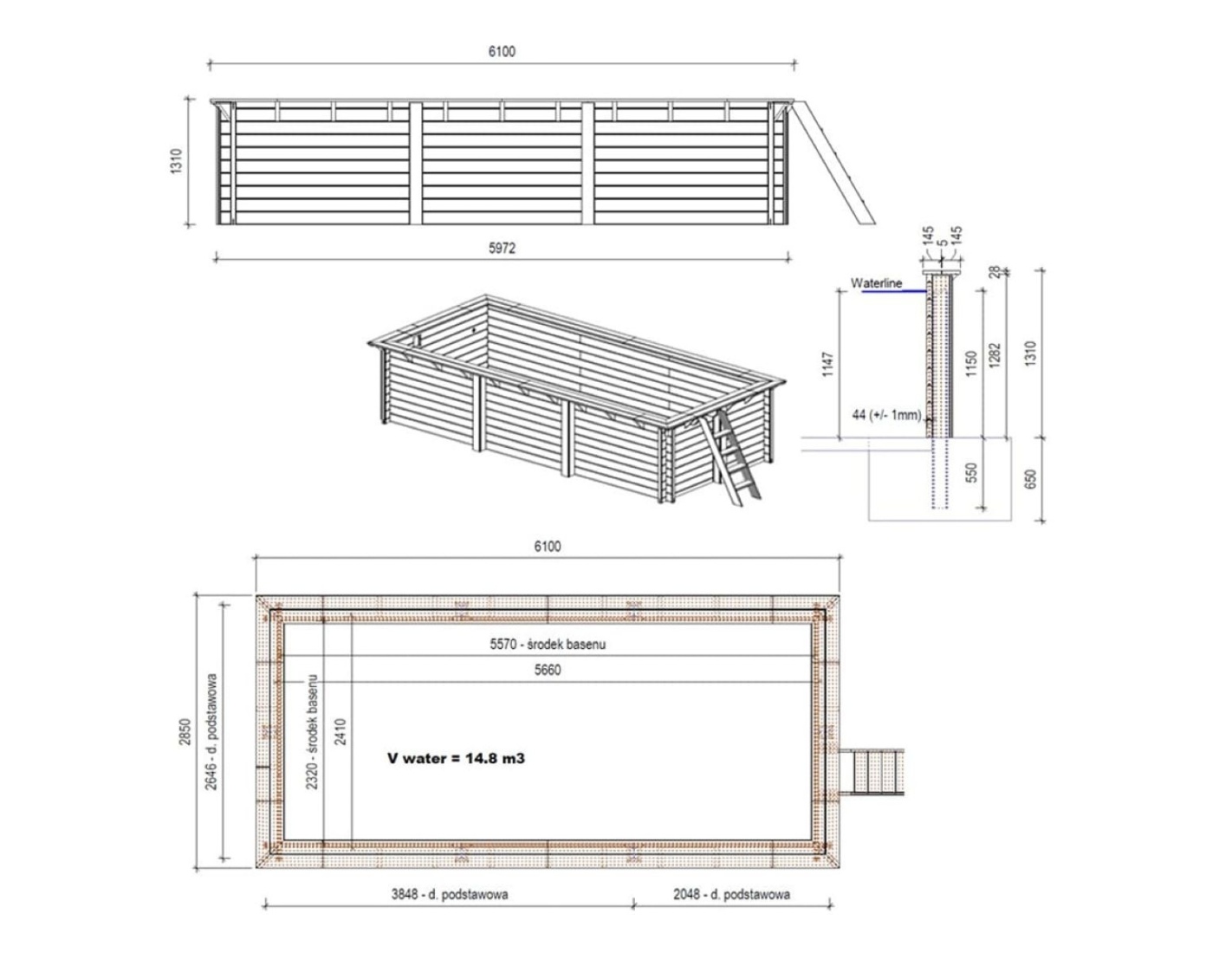 El modelo de piscina con dimensiones 6.1 × 2.85 m y una altura de 1.31 m ha sido diseñado para que toda la familia pueda disfrutar cómodamente del frescor en los cálidos días de verano.