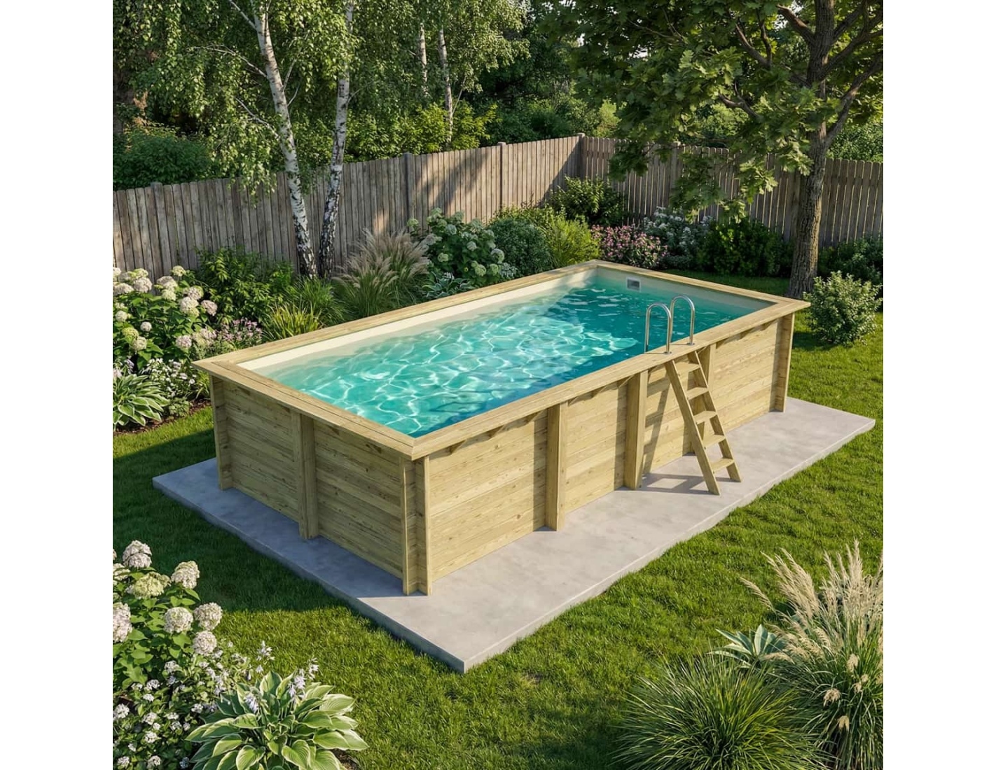 Descubre una piscina que combina la belleza natural de la madera, la estabilidad de la estructura y la seguridad de uso.