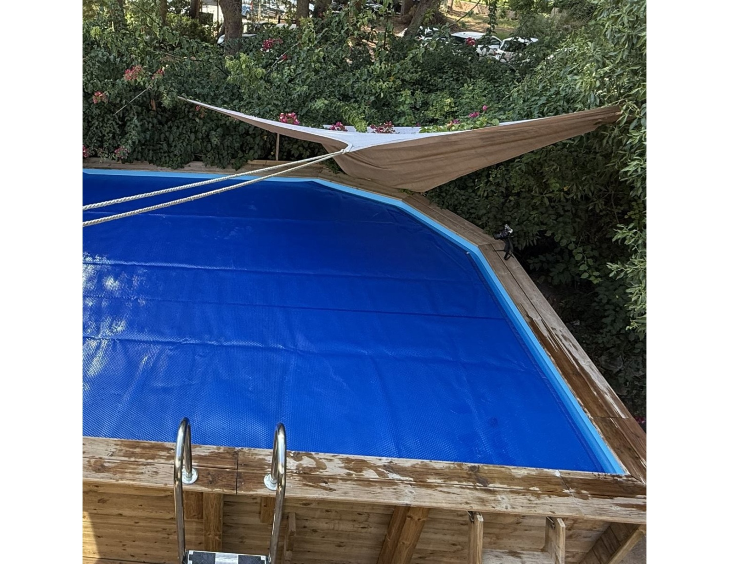 Cobertor de burbujas de verano para piscinas, cortado a la forma y medida del interior de la piscina.Polietileno 400 µColor azul oscuroLos bordes del cobertor están cosidos y son duraderos.