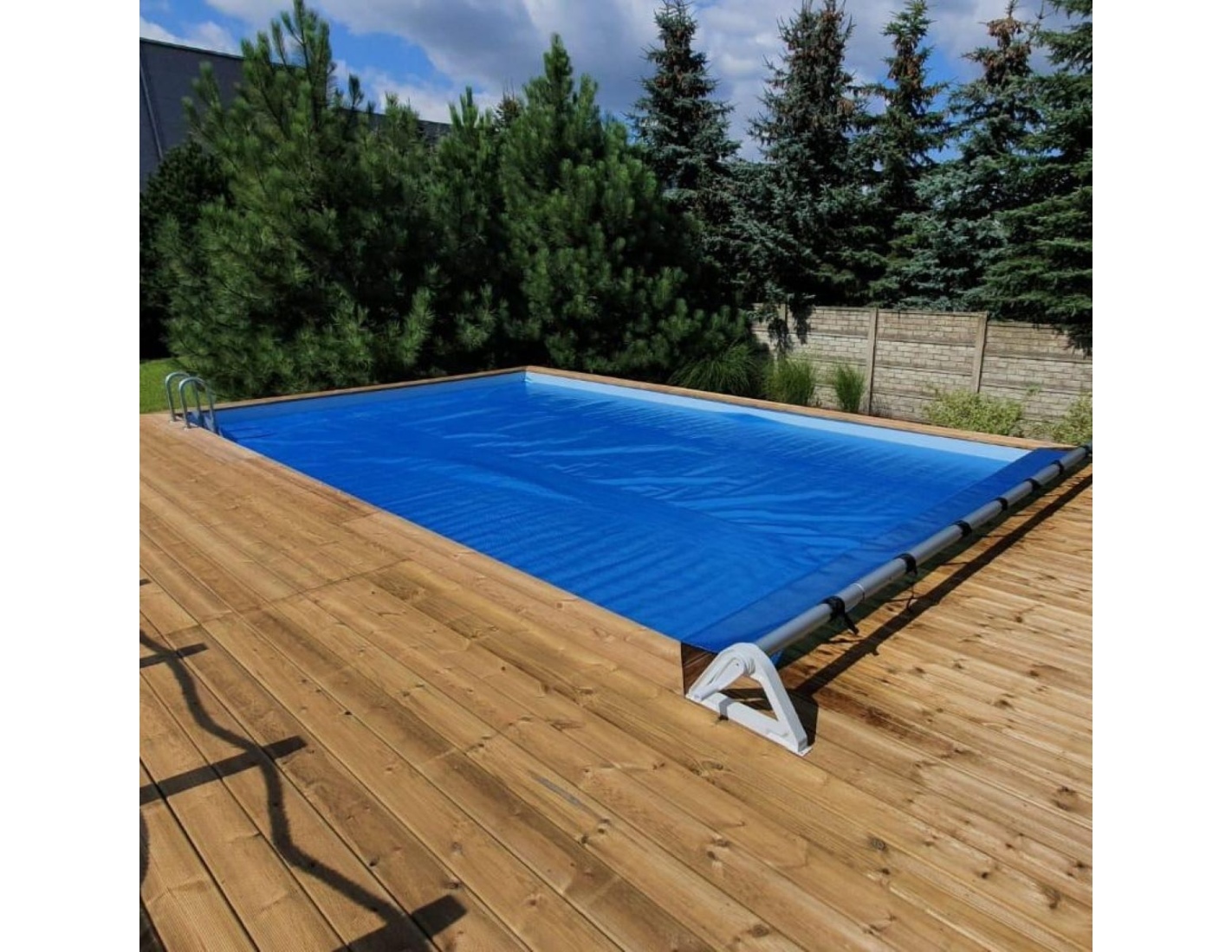 Cobertor de burbujas de verano para piscinas, cortado a la forma y medida del interior de la piscina.Polietileno 400 µColor azul oscuroLos bordes del cobertor están cosidos y son duraderos.