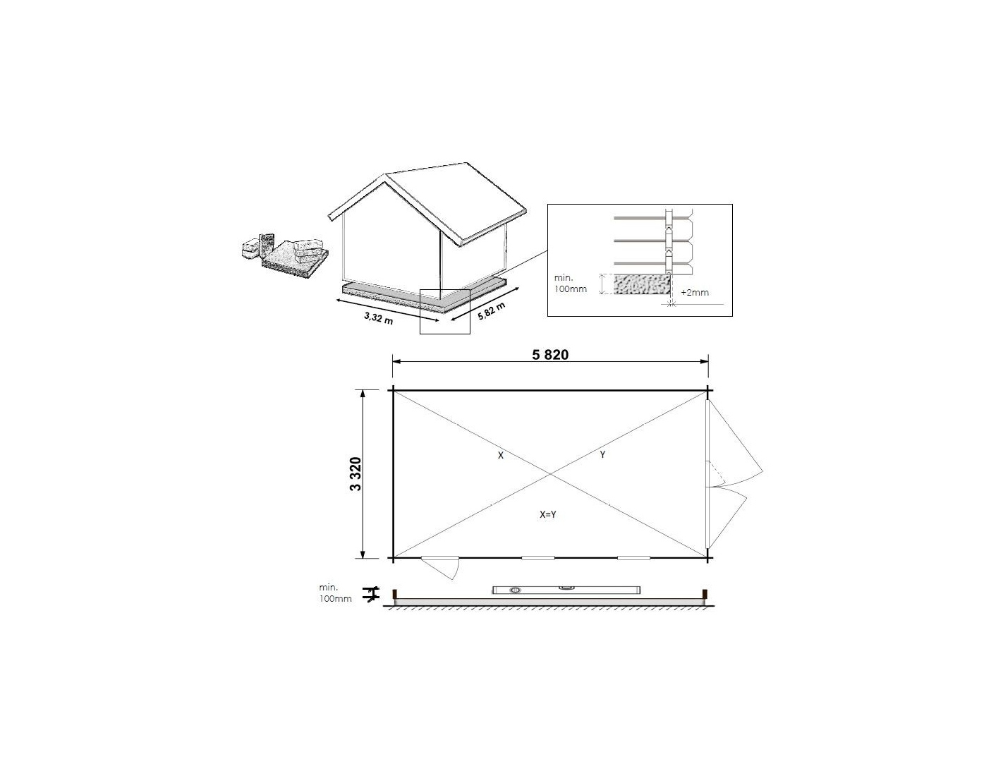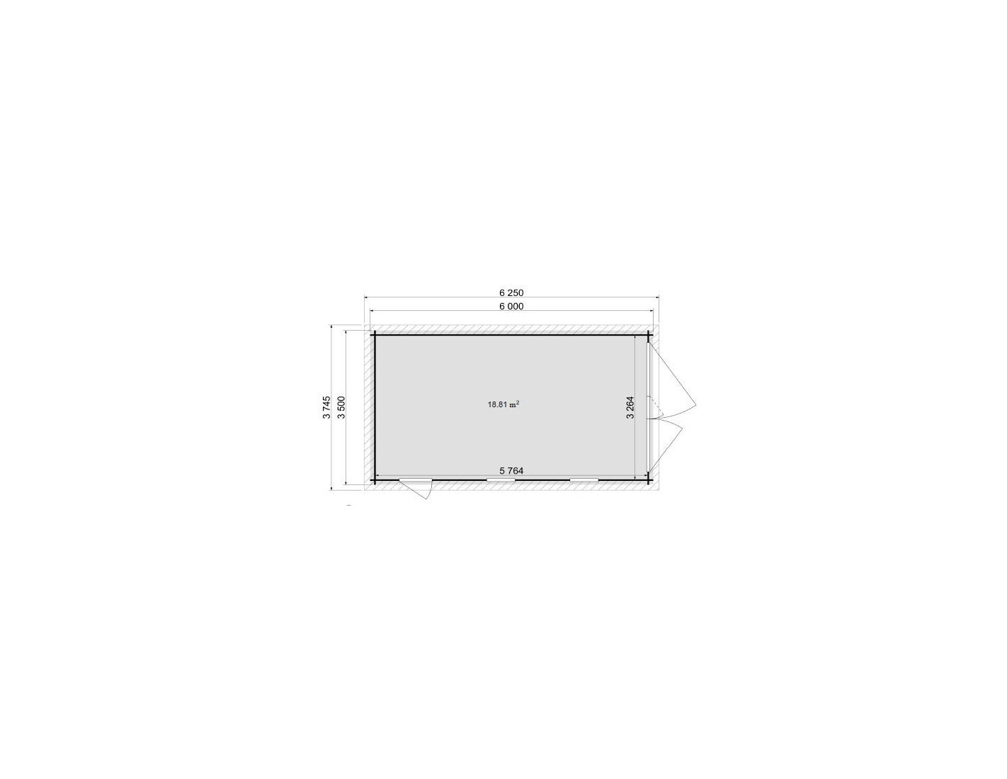 Garaje de madera GAR20 de ancho de 3.5 m y profundidad de 6 m. La altura de entrada es de 1.88 m.