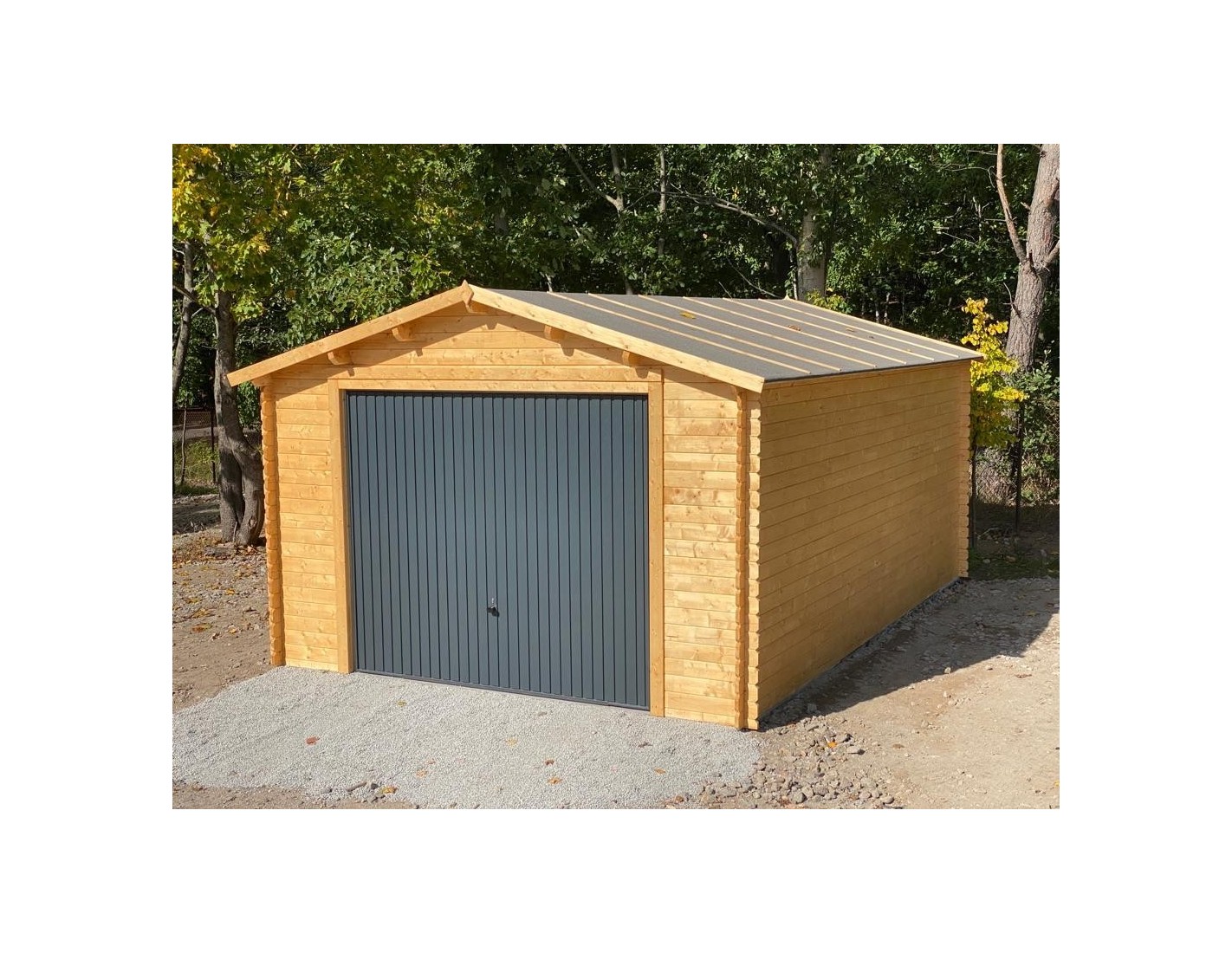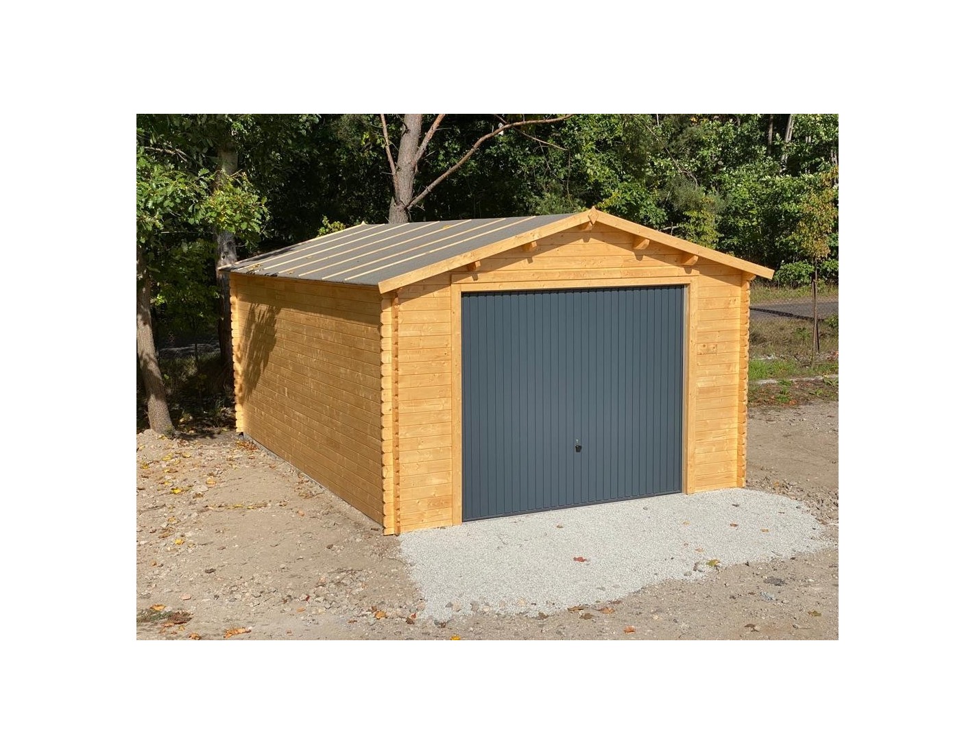 Garaje de madera GAR24 de ancho de 4 m y profundidad de 6 m. La altura de entrada es de 2.12 m.