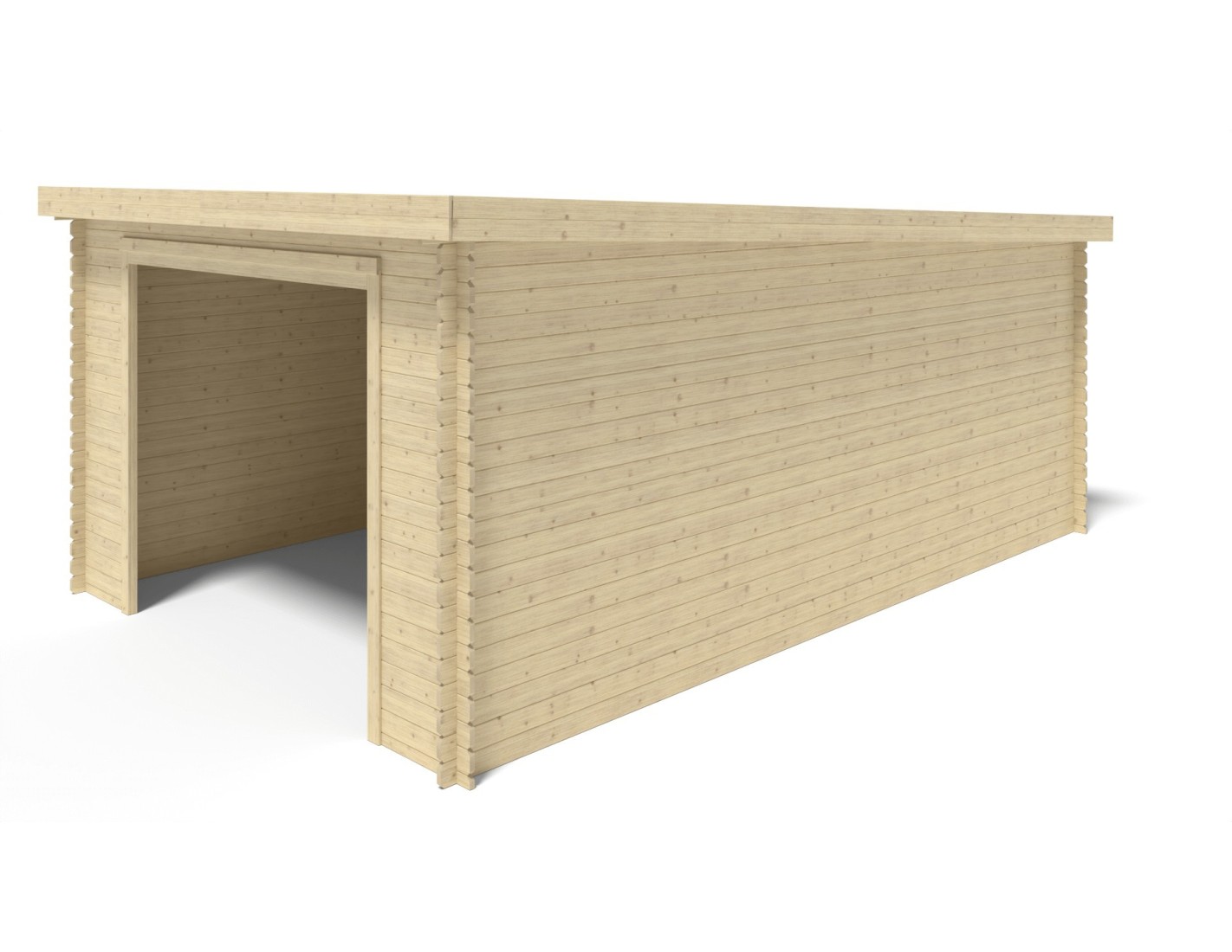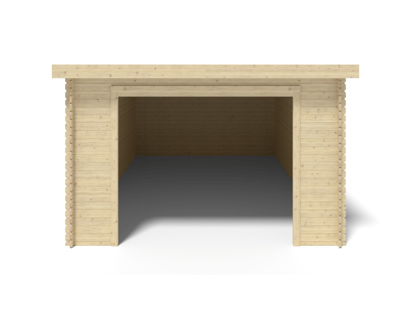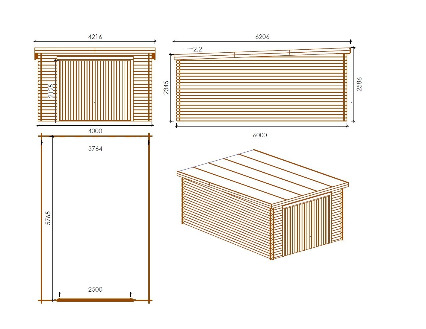 Garaje de madera GAR25 de ancho de 4 m y profundidad de 6 m. La altura de entrada es de 2.12 m.