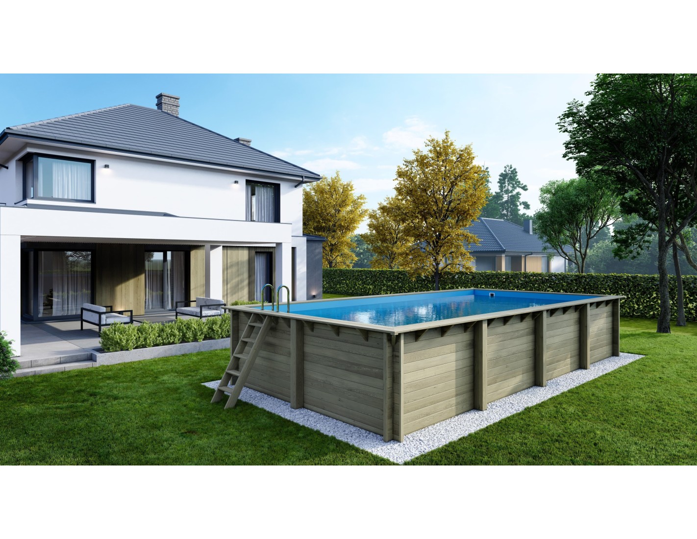La estructura de madera proporciona una apariencia cálida y natural, lo que convierte este tipo de piscinas en una opción popular entre los propietarios de jardines, que valoran la armonía con la naturaleza que les rodea.