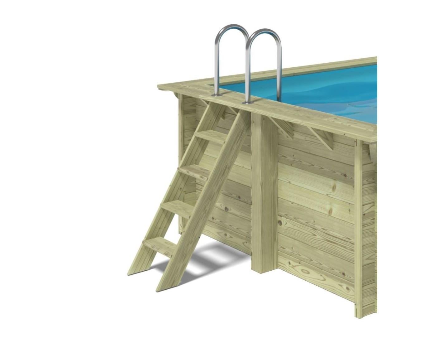 - escalera de madera con posibilidad de retirarla cuando la piscina no está en uso