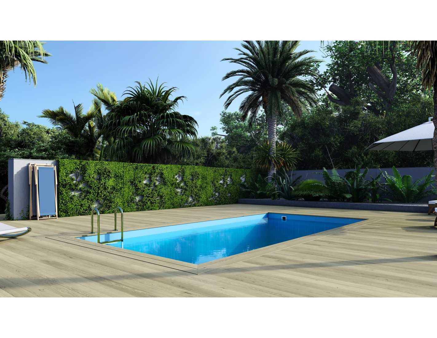- escalera de madera con posibilidad de retirarla cuando la piscina no está en uso